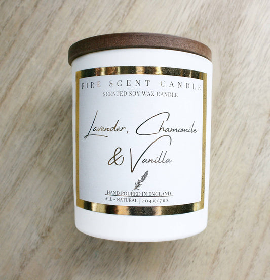 Fire Scent Candle Lavender, chamomile & vanilla scented luxury soy wax candle