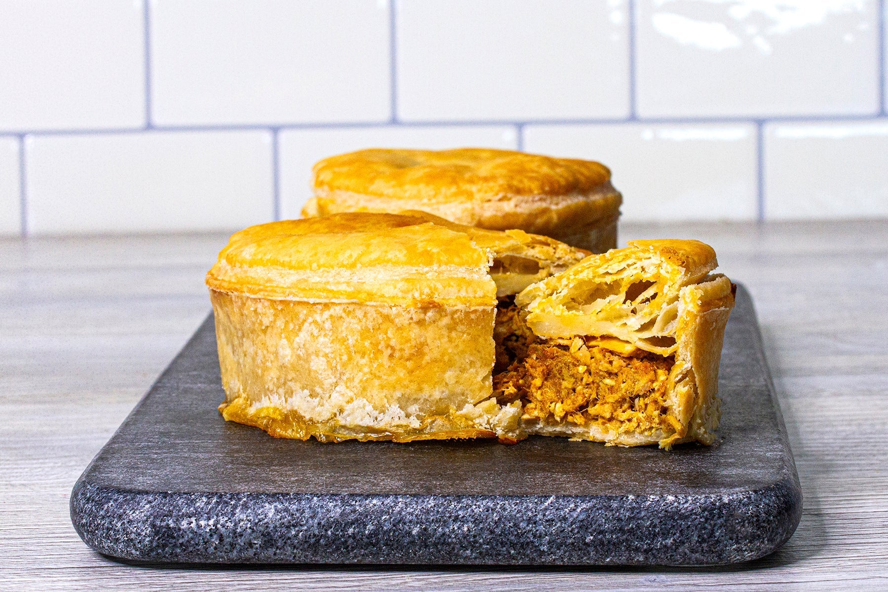 Curry is one of the national dishes of the United Kingdom. An innovative recipe combining the powerful flavor of medium spicy curry and pulled chicken with our traditional Ackroyd's pie shell. The chicken and curry blend are cooked together and allowed to chill overnight so that the flavors properly combine.