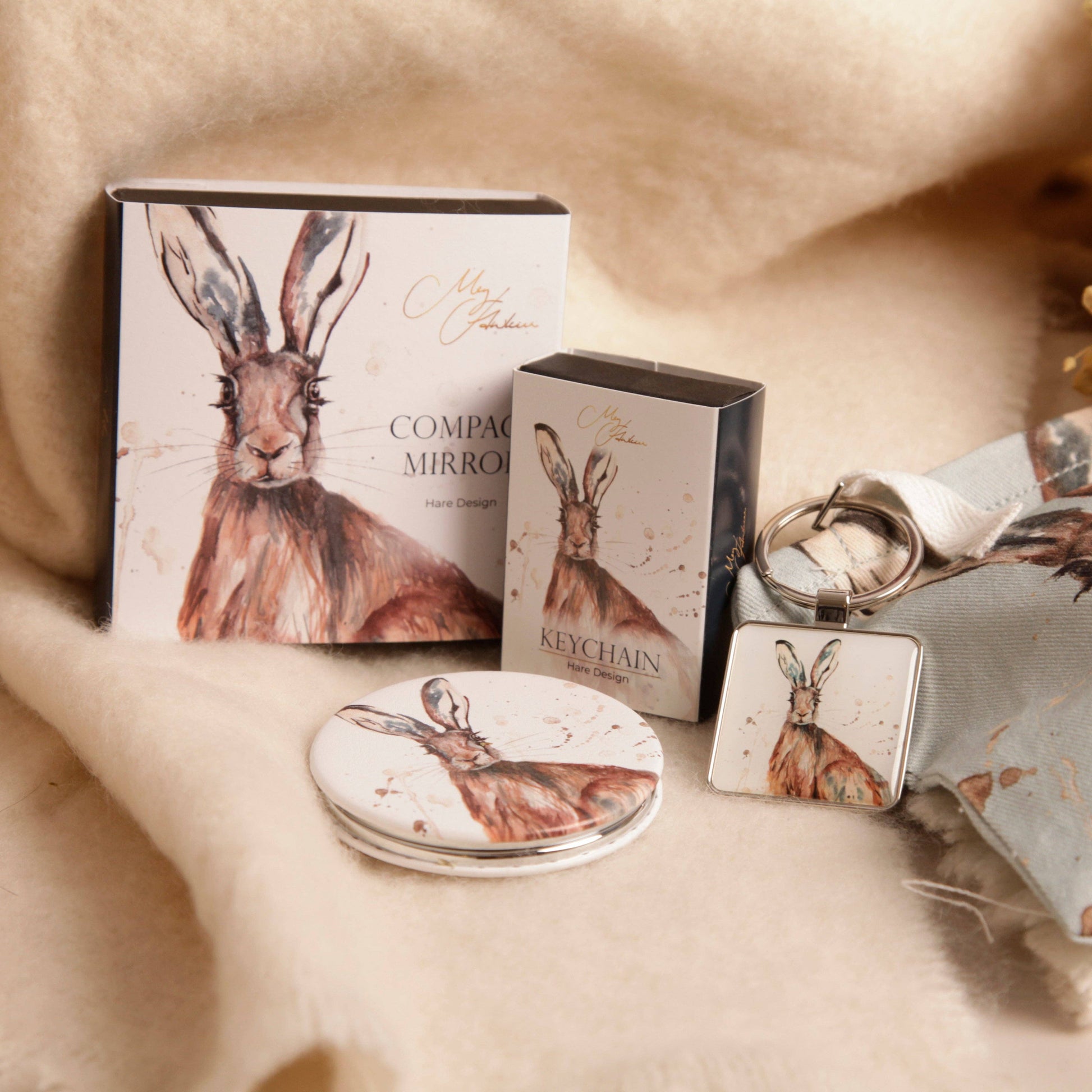 Meg Hawkins Hare Design Country Animal Design Watercolour Compact Mirror